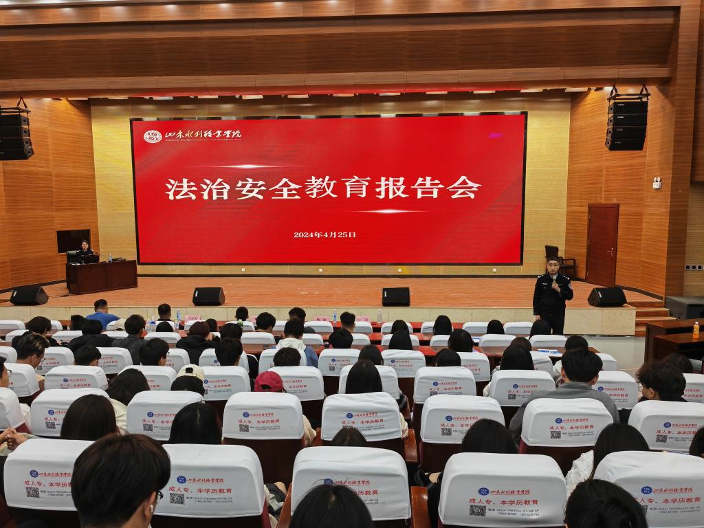 4月25日,学院在学术会议中心举行法治安全专题报告会,特邀日照市公安局政保支队境外非政府组织大队大队长宋德水、东港公安分局刑警大队五中队指导员杨丽、东港公安分局网安大队民警丁凌霄等5人来校作专题报告。学生工作处、总务处、各系部相关负责人,辅导员代表及700余名学生参加活动。