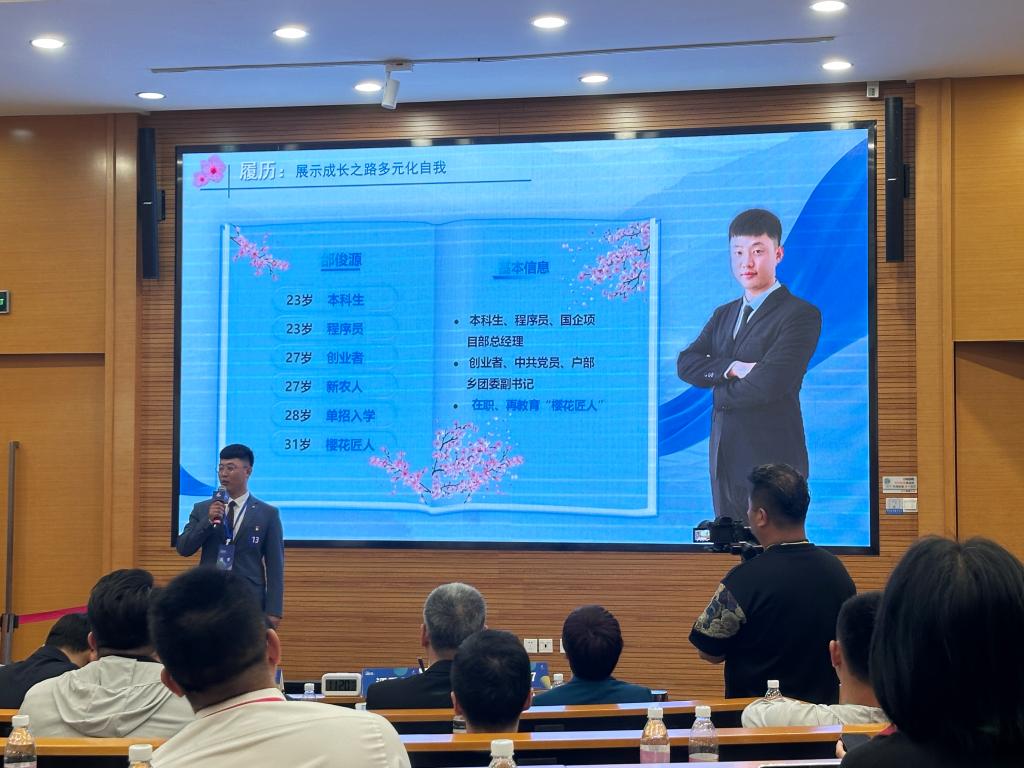 邰俊源以《樱乡情深,逐梦乡村——不一样的职业规划》为题,从角色定位、创业故事、实践成果、发展规划四个层次进行陈述。以“程序员”-“创业者”-“职教生”-“樱花匠人”的职业发展经历为主线,呈现了成长路上多元化自我和助力乡村振兴的职业价值与追求,充分展现了新时代青年的时代担当和青春风采。