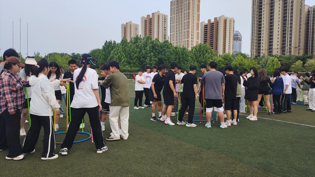 本次运动会共有“不倒森林”“摸石过河”“齐心协力”“两人三足”4个项目,“不倒森林”通过在保证手里的杆子不落地的情况下转圈培养学生的团队默契及凝聚力;“摸石过河”借助三块海绵砖接力考验平衡感和策略思维;“齐心协力”通过“踢毽子、跳绳、四平八稳、投壶、蒙眼敲锣”5个环节的接力考验手眼协调能力,培养学生专注力和团队默契;在“两人三足”项目中同学们默契配合,在一声声口号引导下共同发力,一根绳,一条心,一起拼。最终,资源与环境系代表队获得团体第一名,经济管理系代表队获得团体第二名,国际合作部代表队获得第三名。