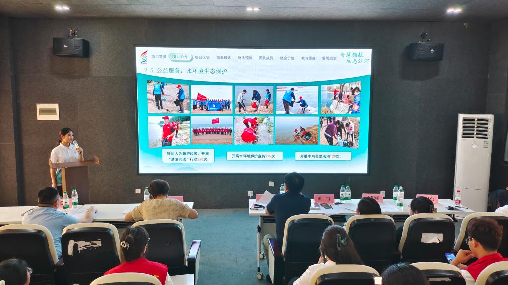 经系部初赛、复赛选拔,最终64个项目入围决赛。比赛设学术会议中心和八号楼智慧教室两个比赛场地,分别进行职教赛道和红旅赛道的路演。项目路演采用“1+5”模式,即1分钟视频+5分钟汇报展示。比赛过程中,项目负责人分别围绕项目简介、项目创新、产品推广、发展前景等方面进行路演。专家评委按照本届大赛的评审规则,从各项目的教育、创新、商业等维度进行评审并打分,优秀项目将获得推荐省赛资格。