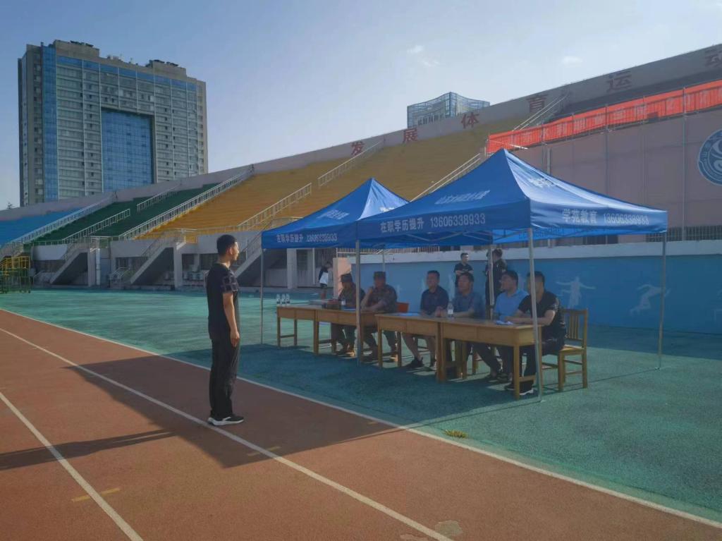 本次考核严格按照山东省教育厅和山东省军区战备建设局的相关要求执行,通过理论考试、面试、军事技能考核和教学能力评定四个方面综合认定参评。面试考核围绕“仪容仪表、个人价值取向、环境适应性、个人成长经历”四个方面,重点考察面试者是否具有正确的价值取向和良好的心理状态、能否胜任学生军训教官职务等。军事技能采取现地集体或个人作业的方式组织,主要考核队列动作、轻武器射击、战术、格斗基础等必训课目。教学能力采取现地讲解示范的方式组织,从大纲规定的军事技能必训课目中抽取1 项进行“四会”教学考核。