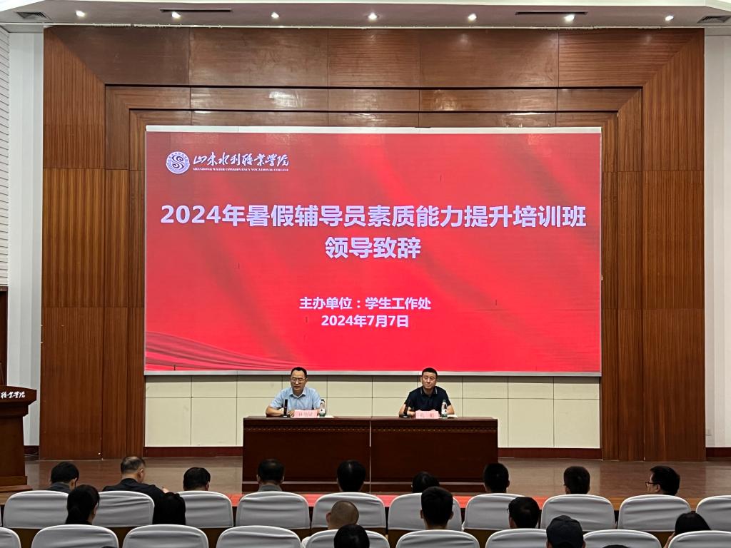 7月7日-8日,学院在学术报告厅举办2024年暑期辅导员素质能力提升培训班。党委委员、副院长林艳斌出席开班仪式并讲话,学生工作处、各系部相关负责人以及全体辅导员参加,开班仪式由学生工作处处长孔彪主持。