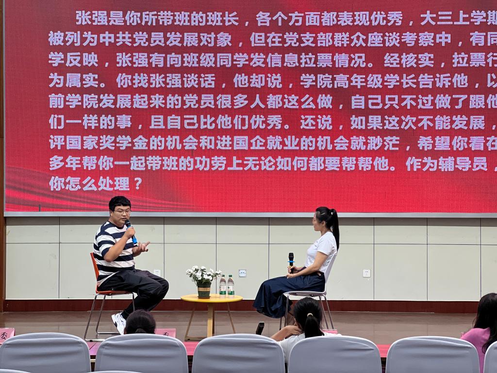 林艳斌首先肯定了本学期学生工作取得的成绩并指出本次培训班举办的恰逢其时,是总结经验,规划未来,充电提升的关键节点。他强调,辅导员是落实立德树人根本任务的重要力量,在学生教育管理服务、维护校园安全稳定、促进学生全面发展等方面起着主力军作用,其言行举止直接影响着育人实效。他要求全体辅导员要牢固树立“四个意识”,一要牢固树立“工作光荣、责任重大”意识,时刻绷紧安全稳定这根弦,不断增强安全意识,守牢安全底线。二要牢固树立“苦干实干、乐于奉献”意识,辅导员工作千头万绪,要脚踏实地,行稳致远,积极耐心做好引导。三要牢固树立“良师益友、当好向导”意识,做学生生活上的知心朋友,思想上的人生导师,行为上的指导教练。四要牢固树立“一门学问、一种艺术”意识,辅导员要努力提升自身综合素质与人格魅力,不断提升教育的艺术和育人效果,成为“全才”,成为“杂家”。