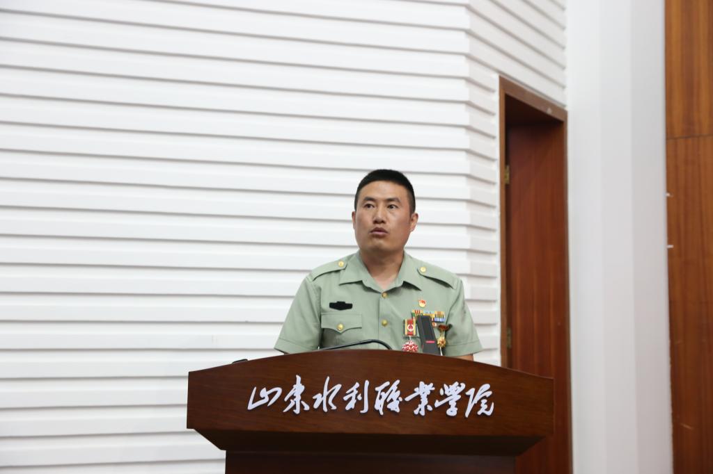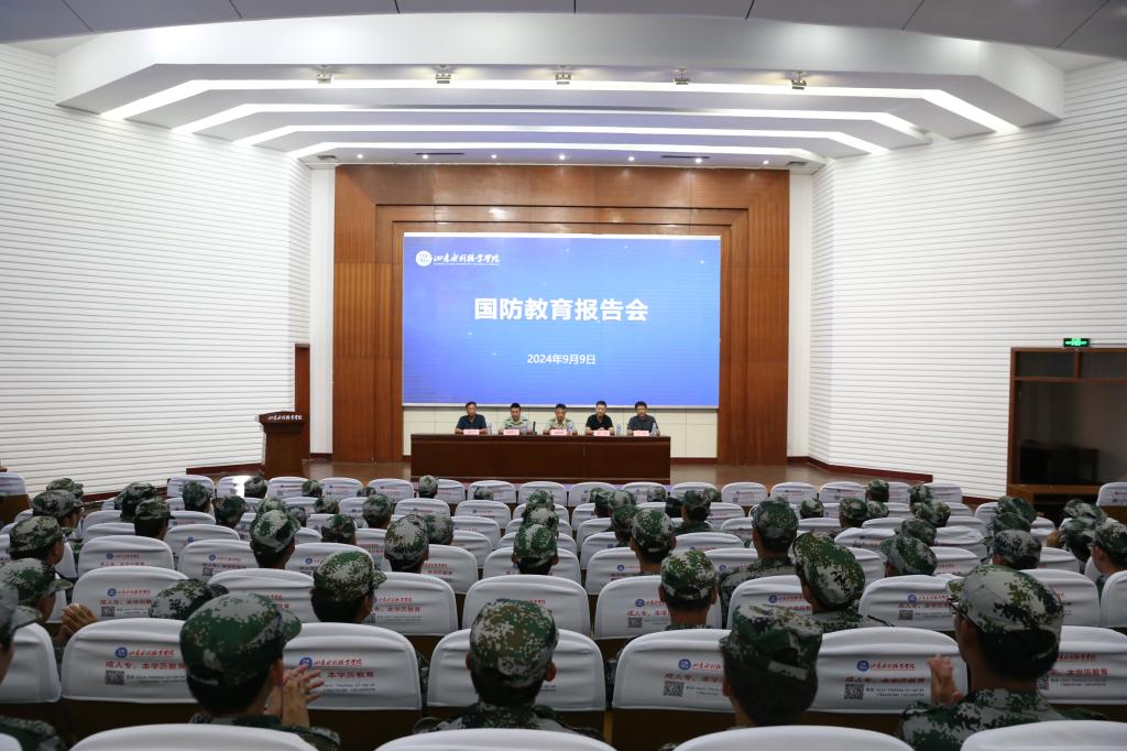 为深入学习贯彻习近平强军思想,增强2024级新生的国防意识和安全意识,厚植家国情怀,9月9日下午,学院在学术报告厅举办新生国防教育报告会。此次会议邀请了荣获一等战功的刘耐峰同志与驻守海岛11年的房绍行同志作专题报告。学生工作处、总务处相关负责人及2024级全体新生参加。