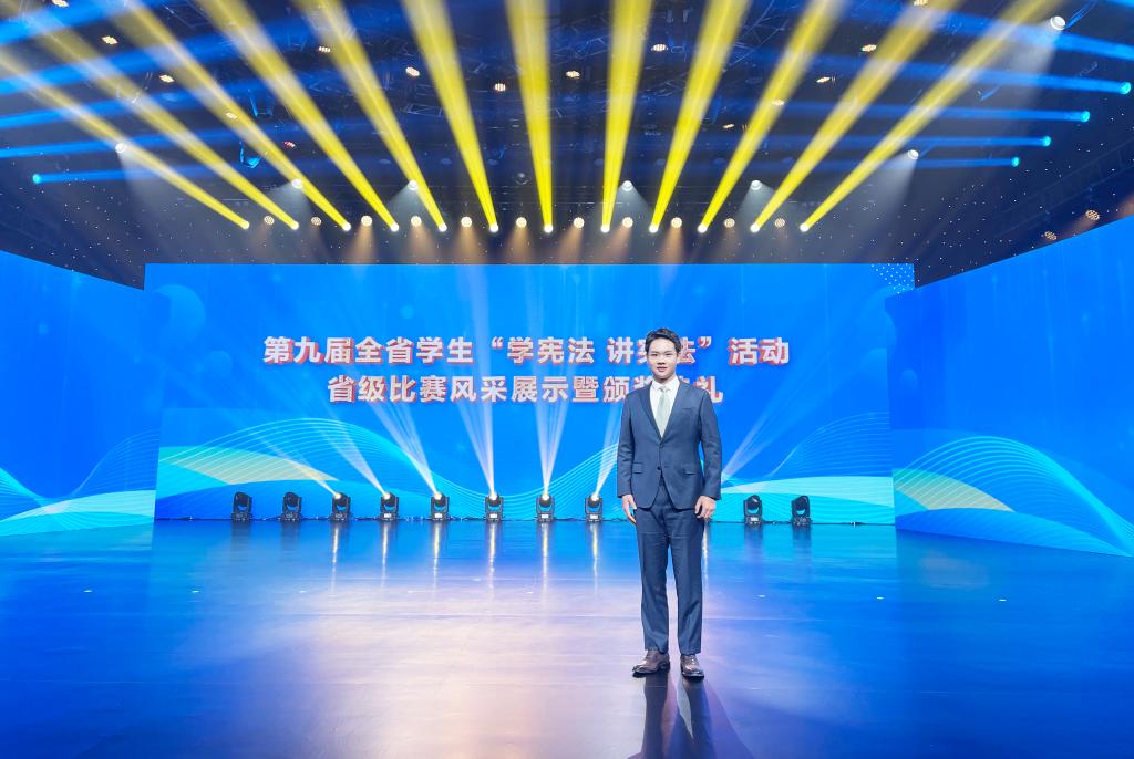 本次比赛由山东省教育厅主办,旨在深入学习贯彻习近平法治思想,推动青少年宪法宣传教育常态化长效化。比赛分为小学、初中、高中、高校四个组别,经省赛组委会专家对近1300余名选手参赛视频、稿件评审后,共有30名选手入围高校组决赛。决赛分为主题演讲和命题演讲两个环节,聚焦宪法相关规定,鼓励参赛者结合个人经历,从多元视角出发,讲述宪法故事,分享对宪法的深刻理解。吕伟嘉同学主题演讲以“明法于心,践法于行”为题,命题演讲以“幸福的味道”为题进行阐述,视角新颖、立意高远,展现了优秀的法治素养和扎实的演讲水平,体现了当代青年对宪法和中国特色社会主义法治的坚定信仰与崇高追求。