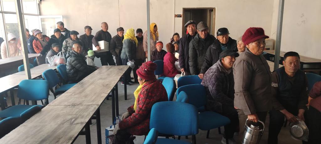 1月13日,日照两城街道大白石村村委会院内人声鼎沸、热气腾腾,食堂大锅内,猪肉炖粉条正咕嘟咕嘟地冒着热情,香气扑鼻,旁边蒸笼上是刚蒸出来的雪白的馒头。这是给村庄130位七十周岁以上的老人们精心准备的爱心餐,门口还有130份颗粒王高端面粉,这是赠送给每一位老人的。