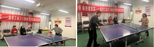 活动当天,体育馆N207内洋溢着欢乐与喜庆的节日氛围。活动内容多样,精彩纷呈。其中,乒乓球友谊赛成为了本次活动的亮点之一。赛场上,女性教职工们以球会友,展现了不凡的运动风采和竞技精神。