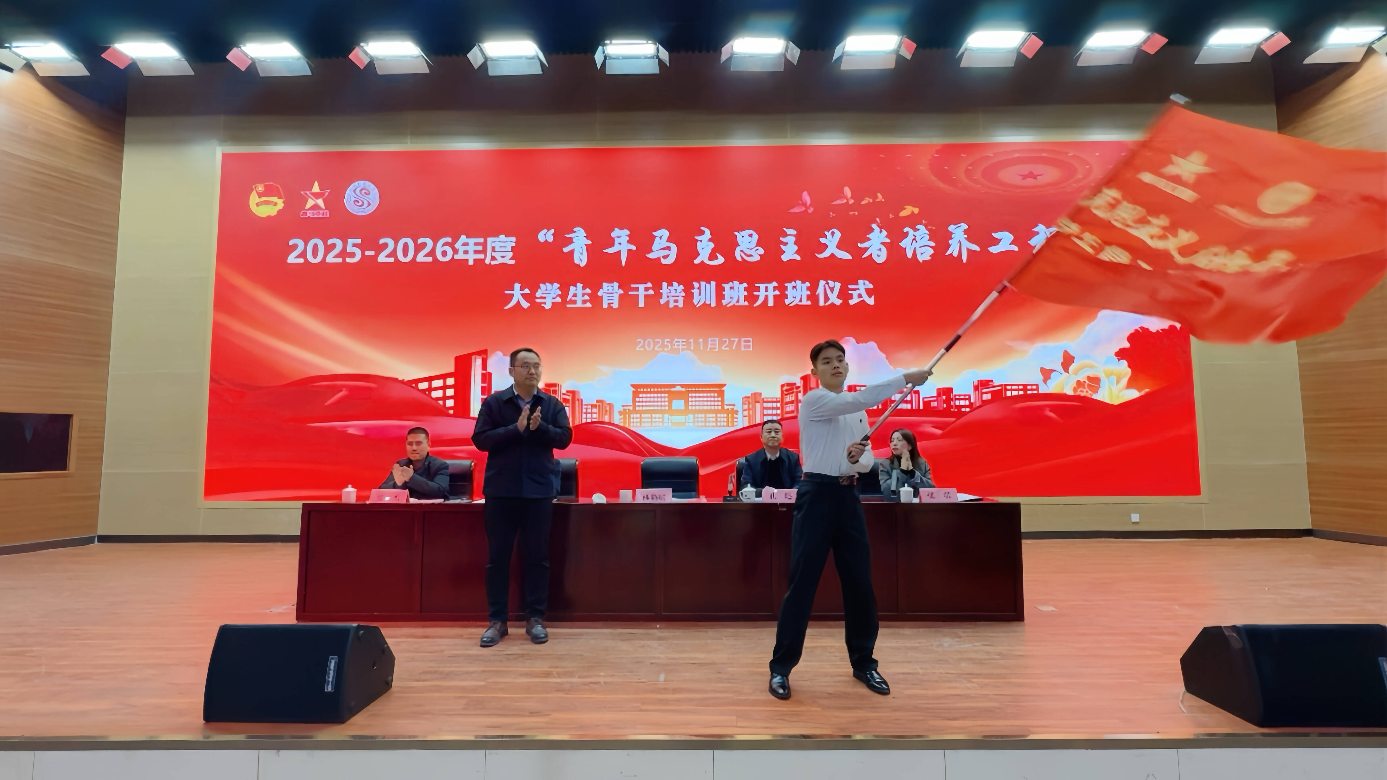 林艳斌为学院2025-2026年度“青马工程”大学生骨干培训班授旗,并作动员讲话。他指出,本期培训班是学院遵循新时代青年培养工作的根本要求,深化实施“青马工程”、做好铸魂育人工作的重要行动。他强调,全体学员要深刻认识“青马工程”的政治意义和时代价值,将其作为提升政治素养、锤炼过硬本领的重要平台。他对学员们提出三点希望和要求:一是要筑牢信仰之基,在深学细悟中把稳思想之舵,做真理的执着追求者。广大学员要系统深入学习习近平新时代中国特色社会主义思想,系统掌握马克思主义基本原理,从理论源头和实践基础上,深刻领悟“两个确立”的决定性意义,不断增强“四个意识”、坚定“四个自信”、做到“两个维护”,夯实听党话、跟党走的思想根基。二要坚持知行合一,在实践熔炉中锤炼过硬本领,做复兴的实干奋斗者。要坚持知行合一,主动深入基层实践,在乡村振兴、社区治理等一线阵地经风雨、见世面;要善用专业所长服务社会发展,积极拥抱人工智能等新技术新模式,将学科优势转化为服务国家水安全战略和生态文明建设的实践成果;要在解决实际问题的过程中壮筋骨、长才干,努力成长为可堪大用、能担重任的栋梁之才。三要牢记根本宗旨,在服务奉献中发挥引领作用,做同学的贴心服务者。要扎根班级、心系同学,发挥好桥梁纽带作用,强化作风建设,力戒“官僚化”“功利化”倾向。在学习上诠释“品学兼优”;在工作中去诠释“实干担当”;在生活中诠释“德润身心”,以清新阳光的形象团结带领广大同学共同进步,展现新时代青年骨干的良好风貌。