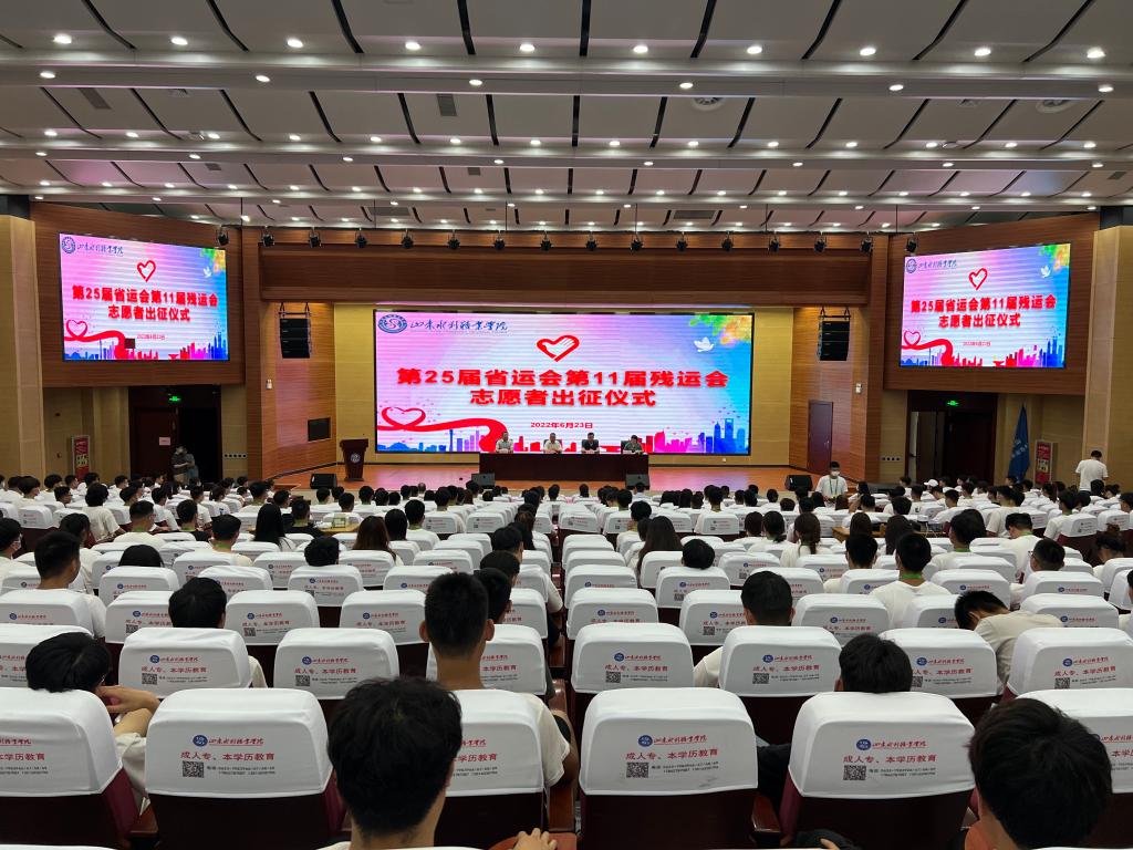 6月23日下午,我校在学术会议中心举行第25届省运会第11届残运会志愿者出征仪式。学院党委委员、纪委书记贾维忠出席并作重要讲话,学生工作处相关负责同志和各系部副书记、团总支书记、辅导员和全体志愿者参加会议。