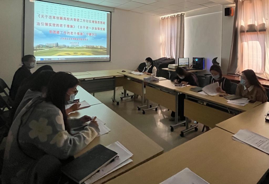 会上传达学习了《关于改革创新高校共青团工作切实增强思想政治引领实效的若干措施》《关于进一步加强党建带团建工作的若干措施》《贯彻落实高校学生社团建设管理办法实施细则》等重要文件。