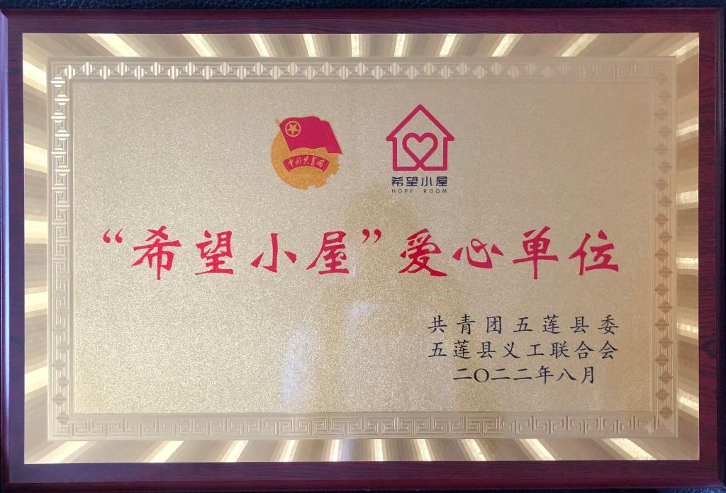 近日,共青团五莲县委、五莲县义工联合会授予我校“希望小屋”爱心单位荣誉称号。