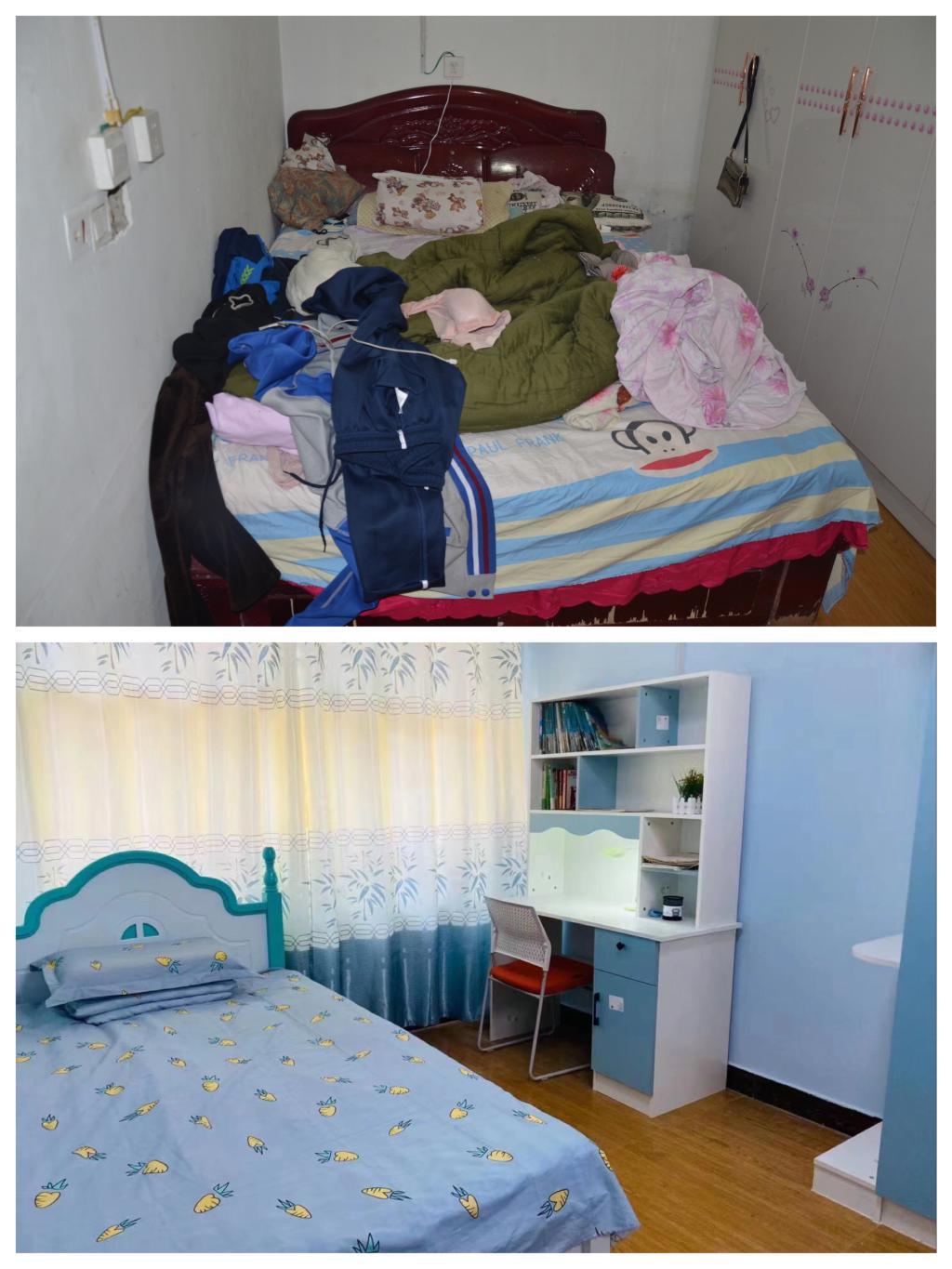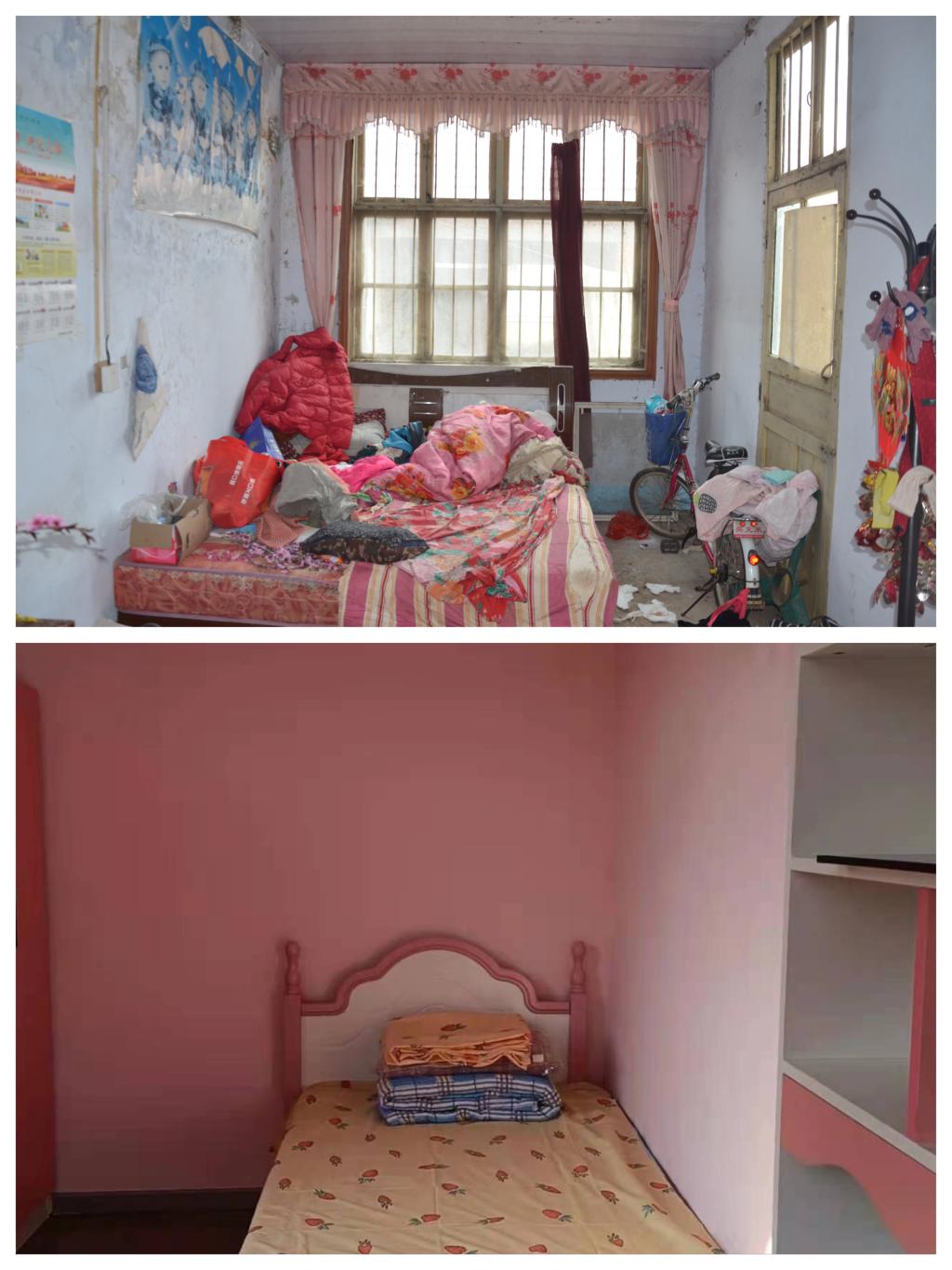 图为五莲县潮河镇后仲金村刘兆云同学“希望小屋”改造前后
