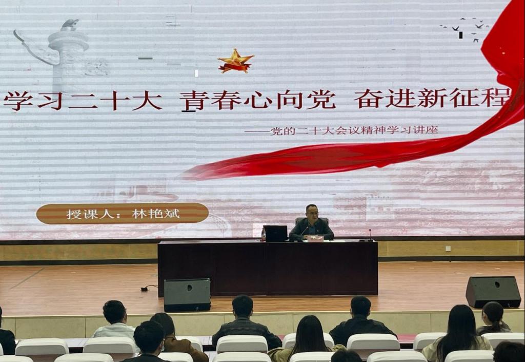 开班仪式结束后,学校党委委员、副院长林艳斌为全体学员讲了培训班第一课。林院长从认识党代会、会议基本情况、党的二十大报告解读、新时代青年的责任担当等四个方面为大家作了一场别开生面的讲座。讲座引经据典深入浅出,深度解读了党的二十大的核心思想和内在精神,加强了学员们对会议内容的理解。讲座最后,林院长对全体学员提出了三点希望:一是要在理论学习中坚定理想信念。要不断加强政治理论学习,用习近平新时代中国特色社会主义思想武装自己,努力成为政治坚定、素质全面的优秀青年马克思主义者;二是要在社会实践中锤炼干事本领。全体学员要赓续奋斗精神,坚持在干中学、学中干,躬身实践,做新时代马克思主义的忠实践行者;三是要在主动作为中争当先锋模范。要将在青马培训班所学所思所悟广泛地在学生群体中宣传,在学习生活中发挥模范带头作用和榜样力量,真正成为有理想、敢担当、能吃苦、肯奋斗的新时代好青年。