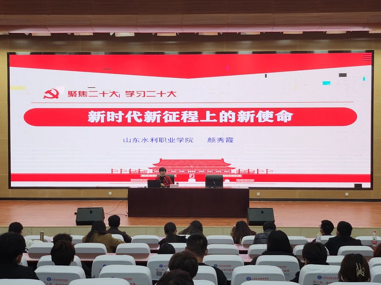 讲座中,颜教授以《新时代新征程上的新使命》为主题,从党的二十大报告的主要框架和结构内容、报告新提法、强国战略、报告热词和报告意义等五个方面,对党的二十大报告及其主要内容进行了全面介绍和解读。她特别强调要深刻领悟和认识“两个确立”的决定性意义,增强“四个意识”、坚定“四个自信”、做到“两个维护”。同时对报告中实施科教兴国战略、推进国家安全体系和中国式现代化等部分进行了重点解读。