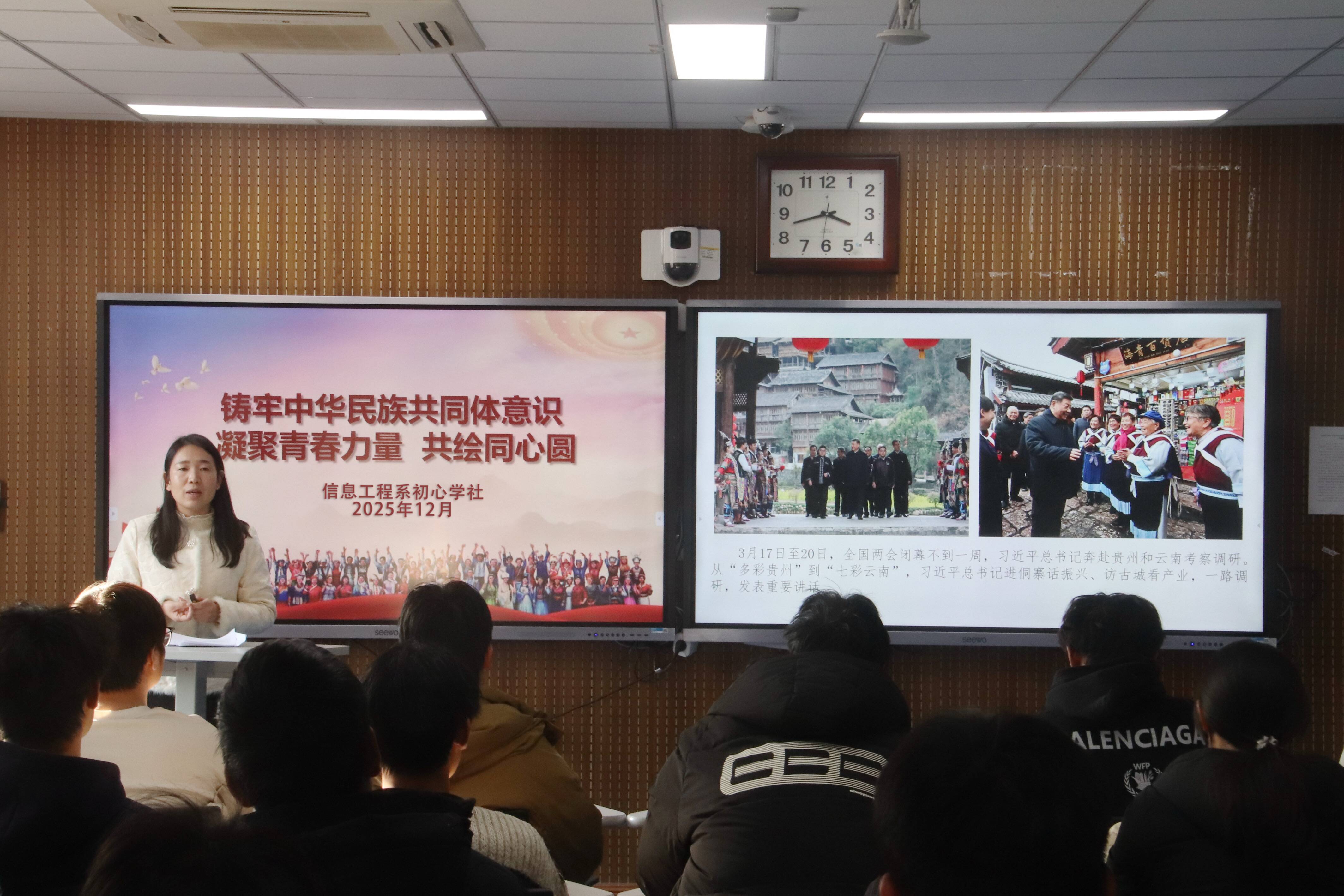 为深入贯彻落实中央民族工作会议精神,深化青年学子对中华民族共同体意识的理解与认同,12月2日至4日期间,信息工程系以“线上+线下”融合模式,组织开展了读书分享会、专题讲座、主题团日等系列教育活动,覆盖全系83个团支部、3000余名师生,推动铸牢中华民族共同体意识入脑入心。