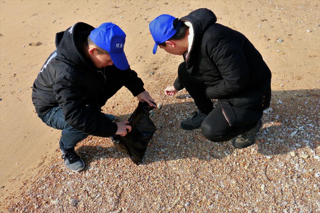 12月23日,我系组织20余名绿色环保志愿者利用休息时间,来到山海天景区沙滩,开展“生态海岸,志愿同行”环保志愿服务活动。绿色环保志愿者协助海边环卫工人,身体力行维护海岸线环境卫生。