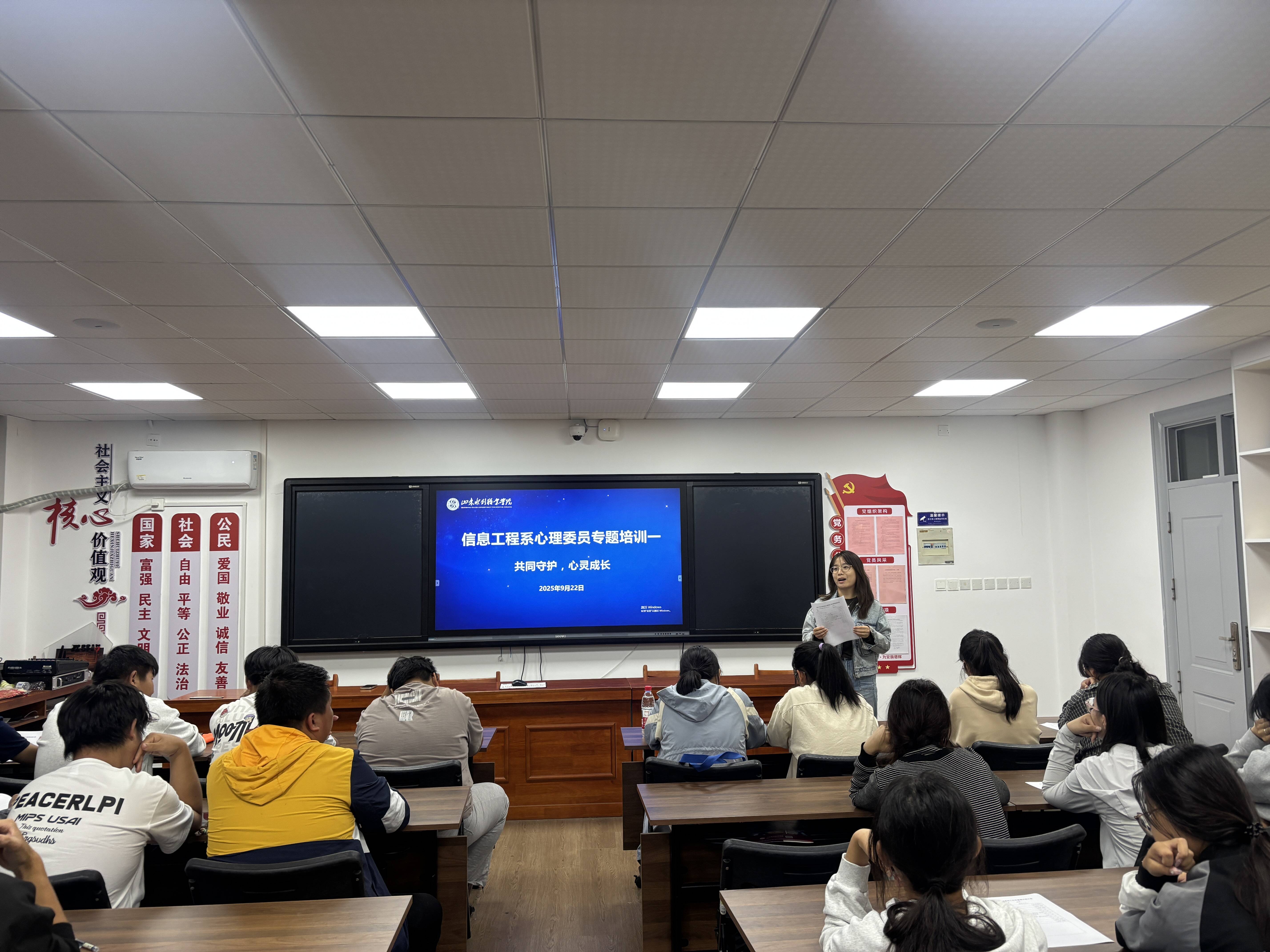 为贯彻落实山东省教育厅等11部门关于《教育部等十七部门全面加强和改进新时代学生心理健康工作专项行动计划(2023-2025年)》的实施要求,进一步完善“学校-系部-班级-宿舍”四级工作网络,信息工程系于9月22日启动2025级心理委员专题培训工作。