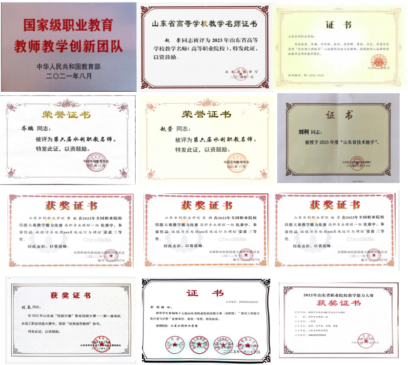 智能水务管理专业拥有专任教师20人,其中,教授3人,副教授9人,具有博士学位3人,硕士学位及以上16人。双师素质的比例达95%,专业拥有山东省教学名师2人,全国水利职教名师2人,山东省技术能手2人。教师在省级以上职业院校技能大赛教学能力比赛和青教赛中获奖9项,立项省部级以上教科研课题6项。