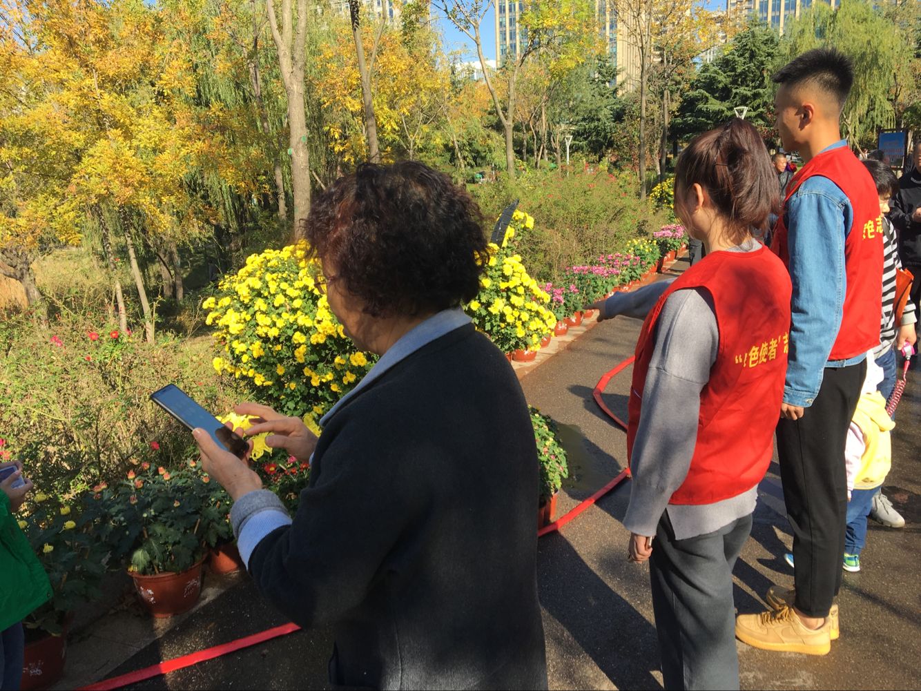 每位绿色使者身着统一志愿服务衣装,印有“绿色使者”字样的片片红色彰显着奉献与爱,穿梭在游客之中为他们指引景点、介绍绿植及花朵的品种。个个欢笑洋溢的青年学子意气风发,带着水院人昂扬的精神面貌向社会传递出绿色、活力、向上的正能量。最后,志愿队还对公园的边边角角进行义务清理,拾捡了周边的白色垃圾。