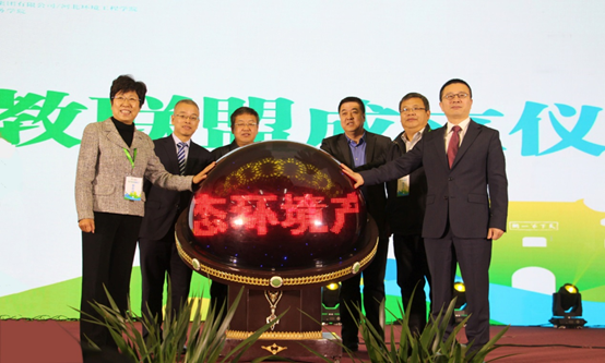 2018年11月7日,由北控水务集团、河北环境工程学院牵头的中国生态环境产教联盟成立大会暨第一届环境教育高峰论坛(以下简称“产教联盟”)在秦皇岛成功举办。中国环保产业协会副秘书长黄滨辉、河北省教育厅高教处处长朱智国、秦皇岛市人民政府副秘书长高卫东、北控水务集团高级副总裁兼北控水务学院院长于立国、河北环境工程学院党委书记朱立杰等领导和来自国内38所科研院校、41家环保企业的产教联盟负责人及河北环境工程学院师生共500余人出席了本次成立大会及论坛。我院资源环境系主任陈克森及张伟老师参加了此次会议。
