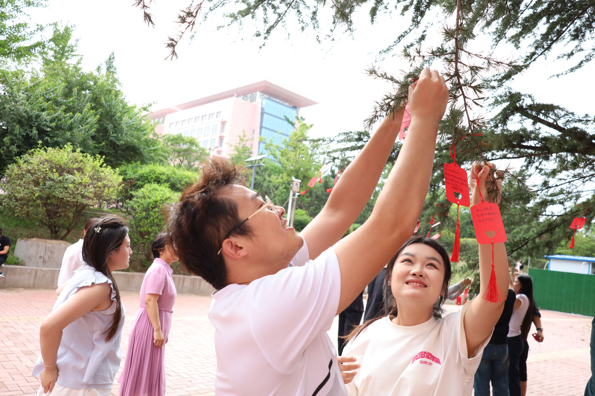 归巢仪式,心愿树下深情寄托。活动开场在纳贤楼前举行归巢仪式,毕业生们将写满未来期许和母校祝福的心愿卡悬挂于心愿树,形成一道承载青春记忆的景观墙。