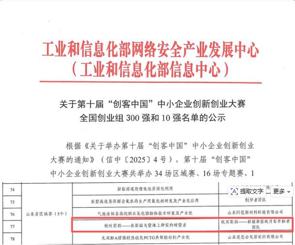 10月17日,第十届“创客中国”中小企业创新创业大赛全国创业组300强名单正式公布。本届大赛由工业和信息化部网络安全产业发展中心(工业和信息化部信息中心)主办,历经全国34场区域赛、16场专题赛及1场境外区域赛的激烈角逐,最终从325个优秀创业项目中评选出全国创业组300强,我院“秋实梨韵团队”成功入选,山东省共5个项目入选。