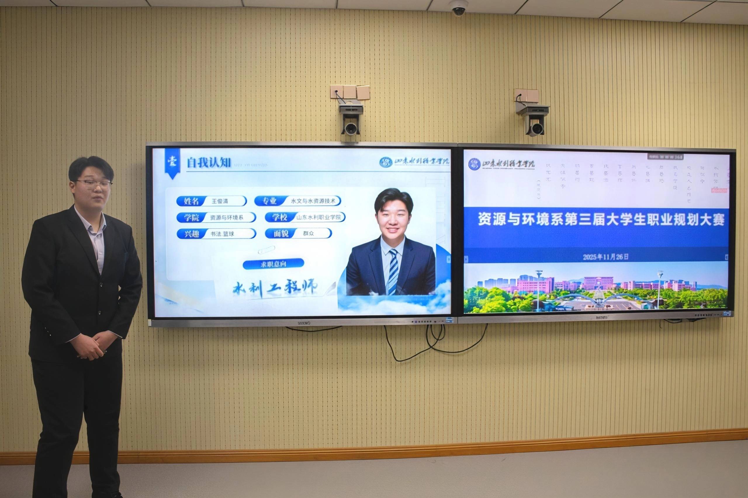 比赛现场,选手们围绕自我认知、职业环境分析、目标设定、实施路径及评估调整等核心模块进行展示。大家紧扣生态环境监测、智能水务管理、园林景观设计等行业领域,结合岗位能力需求与实习实践经历,系统阐述职业发展蓝图,分享职业认知与成长感悟,充分展现出新时代大学生积极进取的精神风貌与扎实的专业素养。