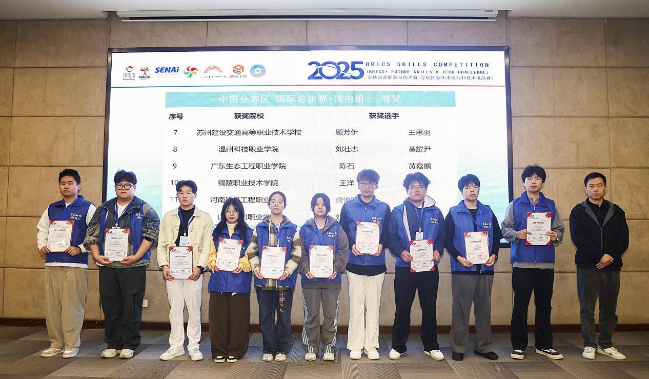 近日,2025金砖国家职业技能大赛“园艺施工虚拟仿真”赛项国际总决赛在上海工艺美术职业学院成功举办。来自全球多国的技能精英同台竞技,我院资源与环境系参赛团队凭借扎实的专业基础和出色的现场表现,在激烈竞争中荣获三等奖。