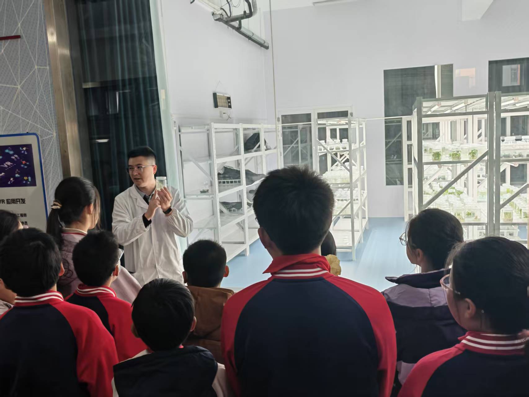 在植物组培实训室,高飞龙老师则以专业严谨的讲解,结合精密的实验设备展示,揭开了植物组织培养的神秘面纱,从无菌操作到试管育苗,孩子们近距离感受着生物技术与水利生态的跨界融合,好奇心与探索欲被充分点燃。