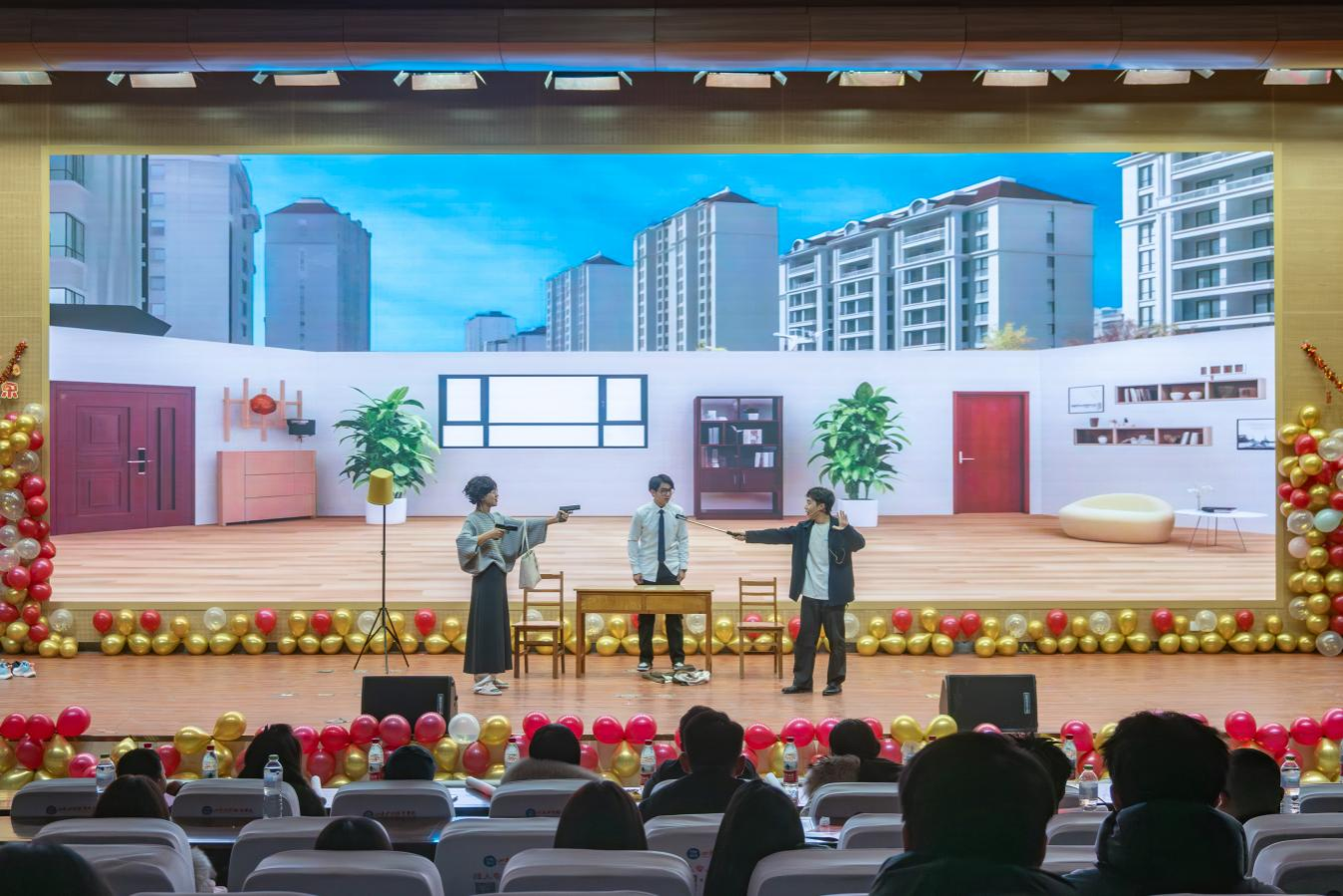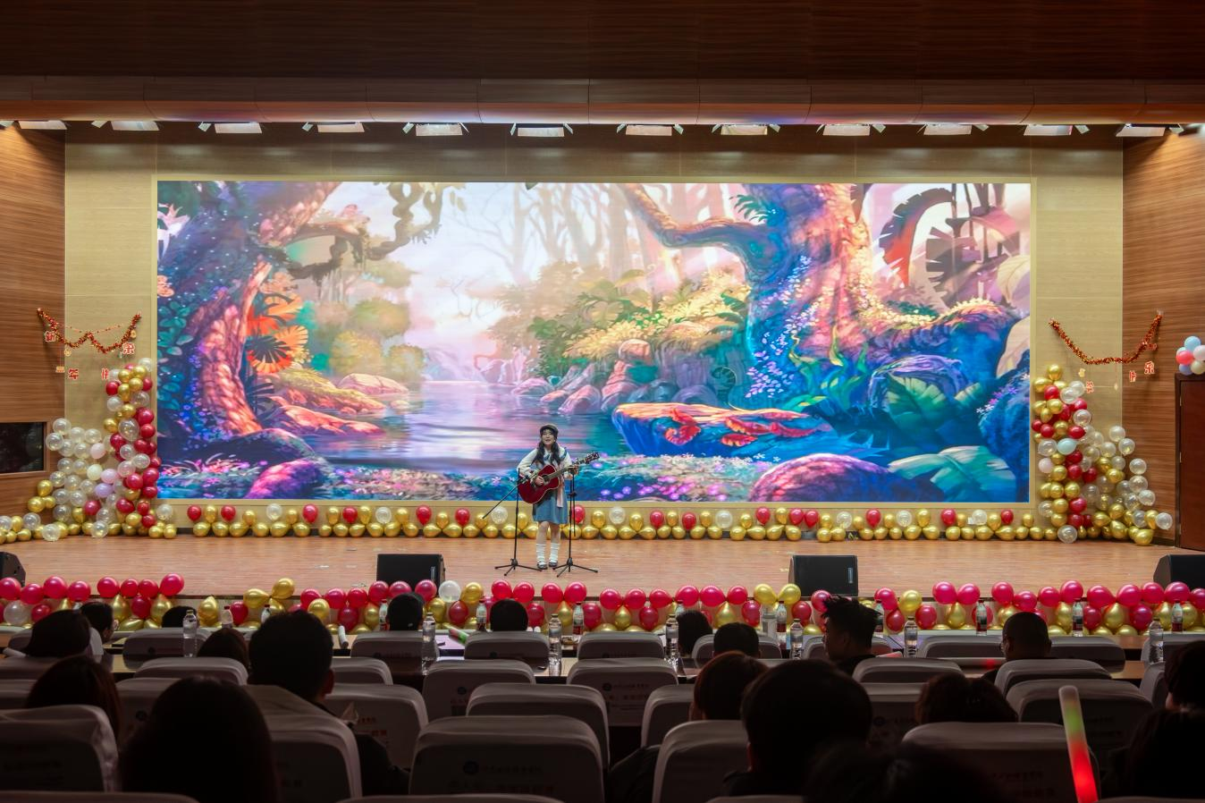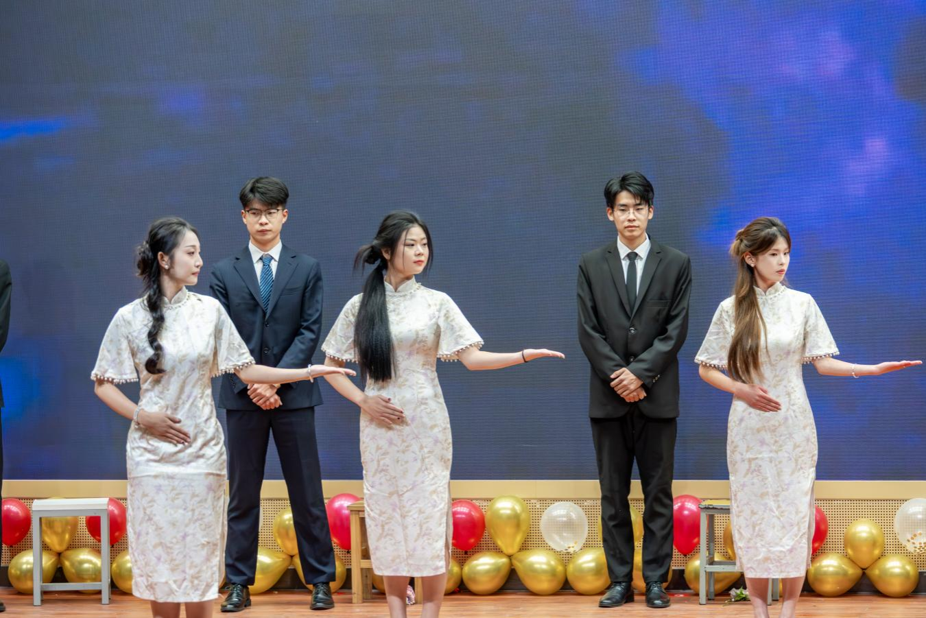 青春洋溢的舞狮表演为晚会拉开序幕,瞬间点燃了全场的热烈气氛。随后,微型太阳乐队以《预谋》《都选C》唱响青春旋律,街舞《JENNIE》节奏强劲、动感十足,展现当代大学生的活力风采,小品《史上第一大劫案》情节巧妙、笑点频出,礼仪操《礼·韵》则优雅大方,彰显礼仪文化之美。舞蹈《雀》姿态翩跹、韵味绵长。最终,晚会在全体演员共同演绎的歌伴舞《相亲相爱》中温馨落幕。