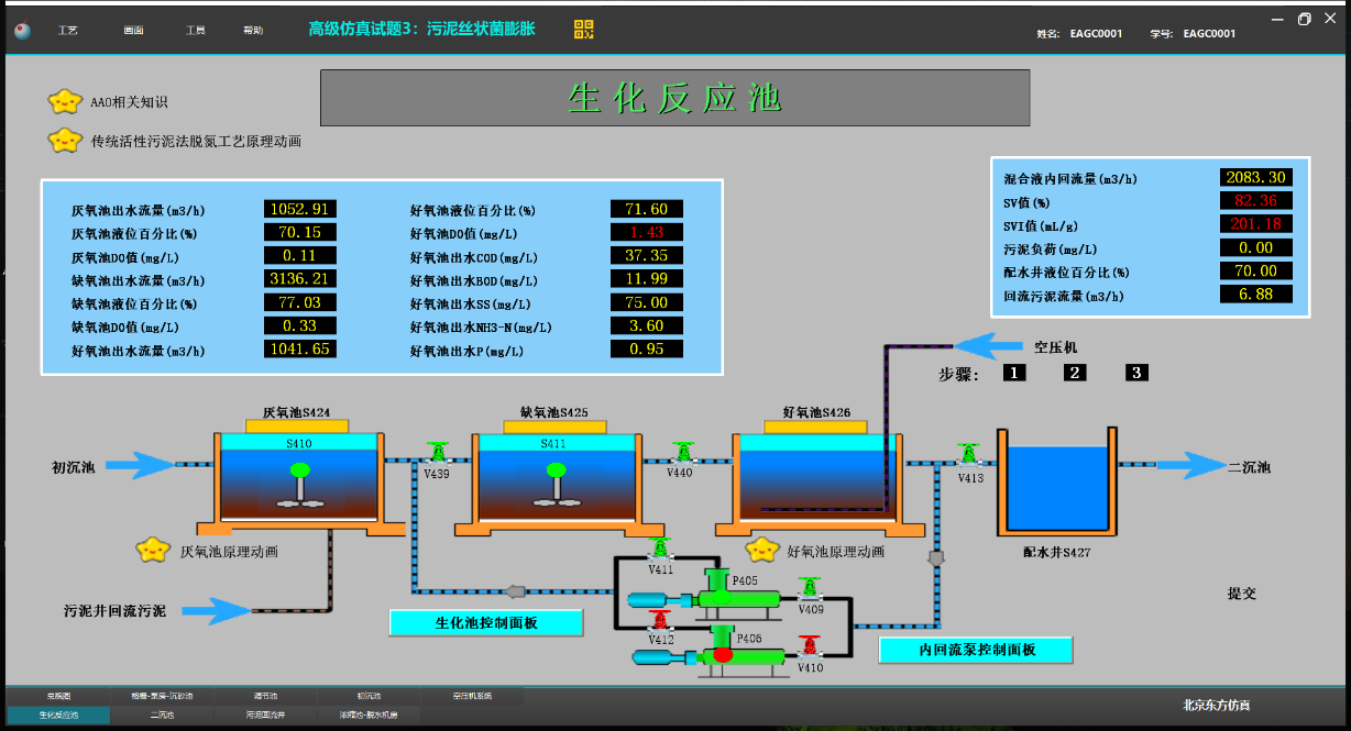充分调研智能水厂运行现状,将真实的智能水厂中控系统引入,覆盖水处理行业13条主流工艺生产线,126个培训项目,呈现相关工艺真实DCS控制系统的主要界面:包括总貌画面、总流程图画面、各流程图画面、变量监控、各种操作仪表及弹出子画面,操作方式和控制方案完全相同。通过操作现场设备,结合仿DCS系统来熟练掌握工艺的开停车及日常生产中的各种常见事故处理。对仿DCS和虚拟现实场景中的操作和工艺参数进行实时评定