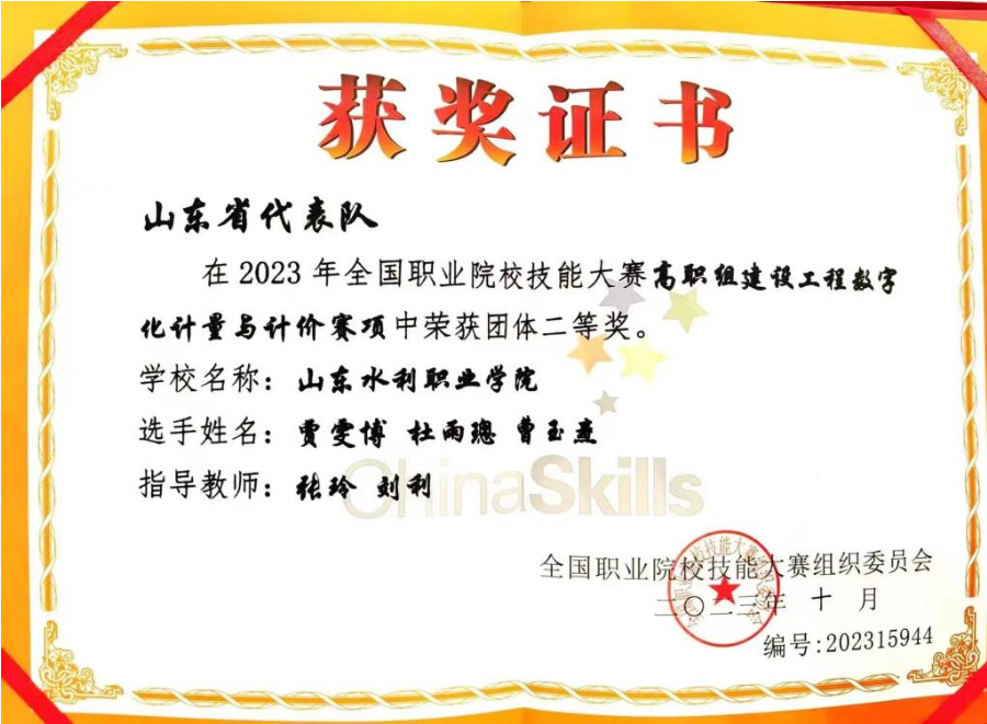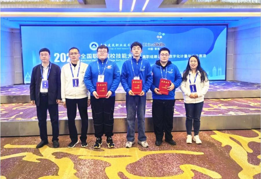10月28日,2023年全国职业院校技能大赛(高职组)建设工程数字化计量与计价赛项在青海省西宁市举行,来自全国32个省市自治区的76支代表队进行了8个小时的比赛。经过激烈角逐,学院资源与环境系贾雯博、杜雨璁、曹玉焘组成的团队荣获二等奖。