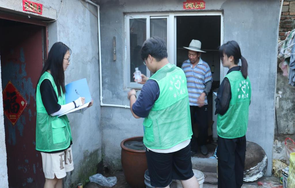 志愿团发挥水生态专业优势,使用便携式水质检测仪、采样瓶分别对当地水库、地表径流以及居民生活用水进行水质采样与初步检测,并将水体样本带回实验室测定水质情况。通过发放科普宣传单向当地村民普及节水护河、水土保持、水质保护等生态文明建设知识,推广节水护水小妙招,帮助村民形成节水、护河好习惯,提高用水效率。