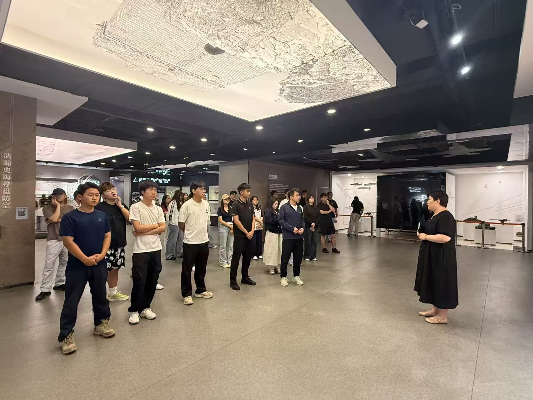日照市人民防空科普教育体验馆以其科学系统的展陈设计和高度还原的情景互动项目,为师生打造了“立体化”的安全学习课堂。踏入场馆,浓厚的学习氛围与精妙的展陈布局令人眼前一亮。在弧形展墙构成的“历史长廊” 前,同学们凝神驻足,聆听专业讲解员深入解读防空事业发展历程,以及公共安全事件中的经验教训。一幅幅珍贵的历史图片、一段段详实的文字资料,让“尊重科学、敬畏生命、预防为先”的安全理念深深扎根于每位学子心中。