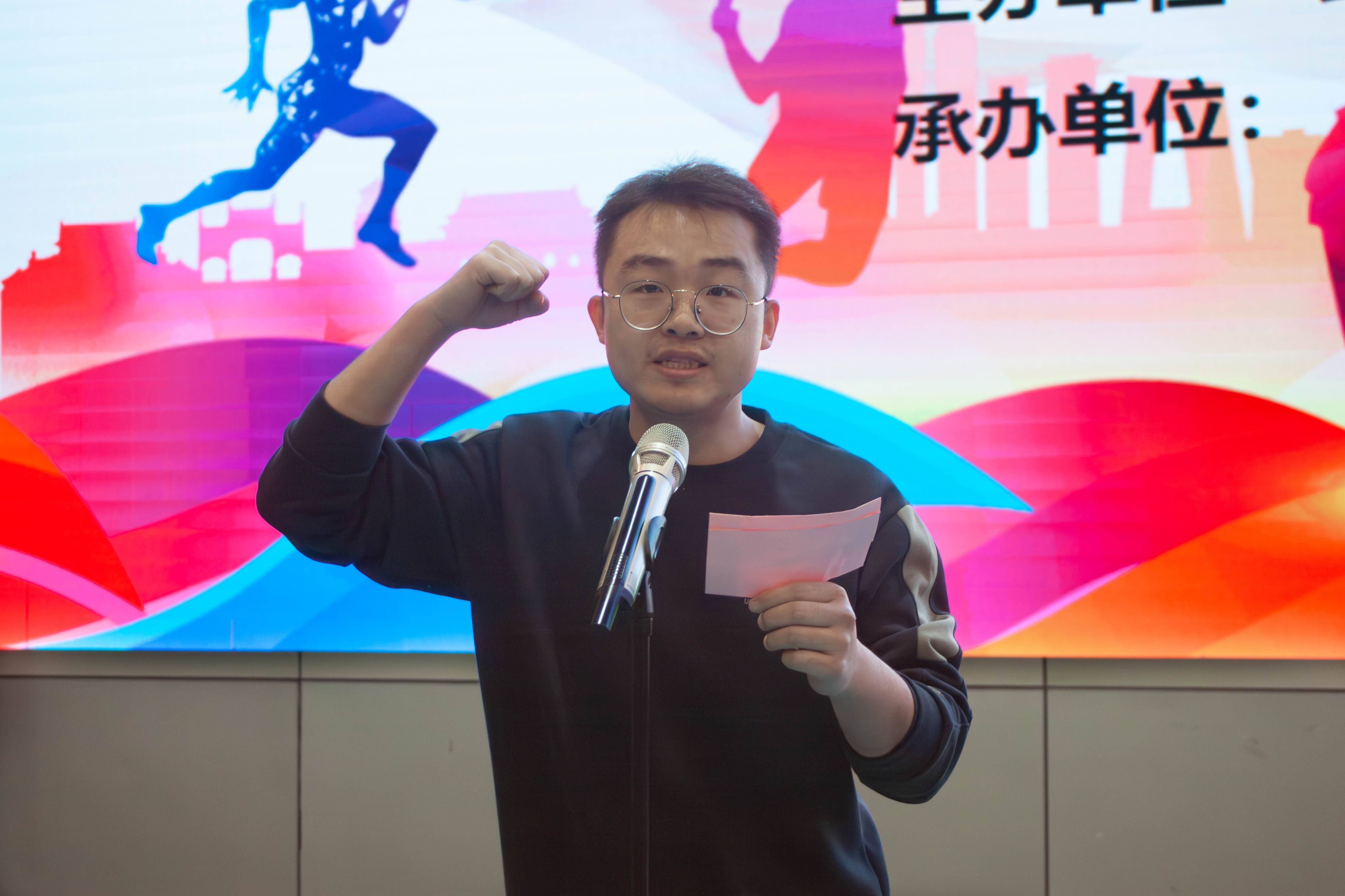 运动员代表刘鑫智同学宣誓。他代表全体运动员承诺,将以积极、饱满、热情的态度投入比赛,弘扬奥林匹克精神,严格遵守赛事规则,服从裁判,尊重对手,团结协作,勇于拼搏,赛出风格、赛出水平。