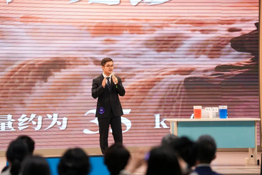 比赛中,张金阁以《黄河的减淤“魔术师”——异重流调沙》为题,巧妙融合动画演示与实物模拟,生动阐释了黄河泥沙治理中的异重流排沙技术原理。其娓娓道来的讲述风格与沉稳从容的舞台表现,赢得了现场评委和观众的一致好评。